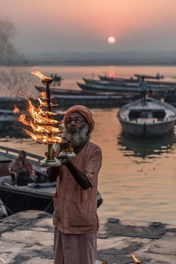 Al atardecer viviremos la ceremonia Aarti: ritual de fuego y y devoción a orillas del río. Un momento intenso y bonito, de esos que se sienten más que se explican.